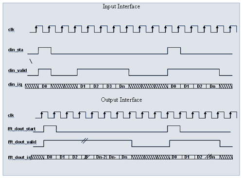 Start the FFT computation. This signal should be asserted either on the last input data sample or anytime after sending all input data. Internal FFT engine will start FFT computation when fft_din_start is sampled high on the clock edge. FFT output will be available after fixed latency |