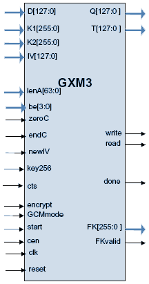 The GXM3 implementation fully supports the AES algorithm for 128 and