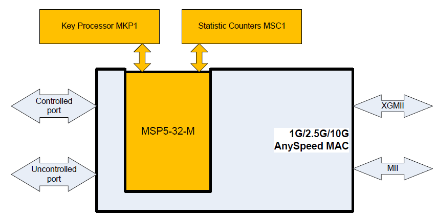 Glueless integration to the 1G/2.5G/10G Anyspeed MAC.
