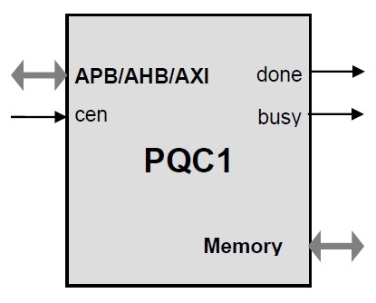 Implements ML-KEM and ML-DSA post-quantum cryptography digital signature standards. The system interface is an microprocessor slave bus (APB, AHB, AXI options are available).