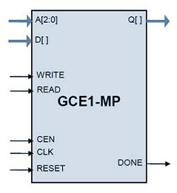 GCE1-MP core is a configuration of the GCE1 core that includes a 128-bit internal key. The register-based interface of the core of the core allows its easy integration into a microprocessor system.